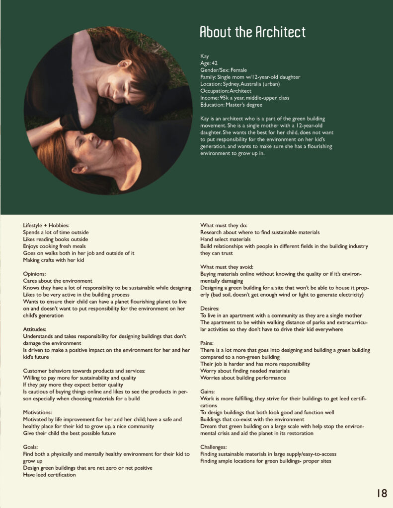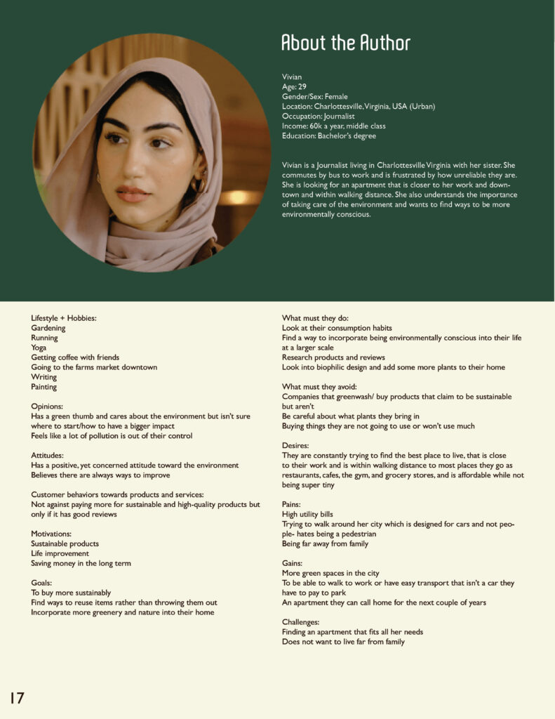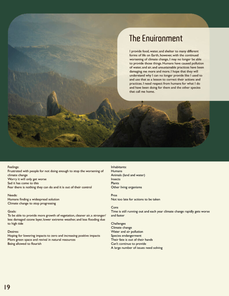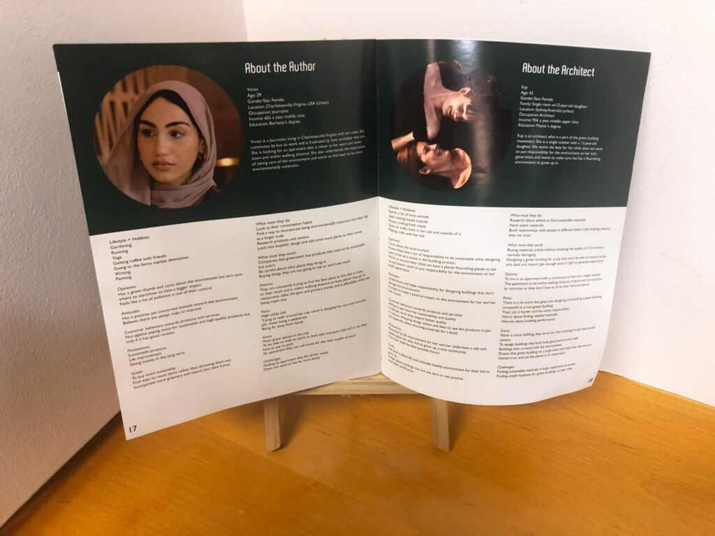 The personas discovered during the research process were included in the magazine not only as people affected by this green future, but also as characters within the storyline built. It was important that they were displayed but effectively portrayed in a context that was not out of place.