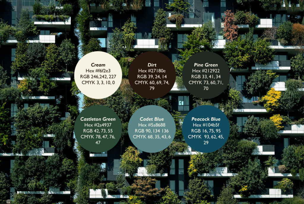 The color palette is a reflection of one of the principles of biophilic design, using colors found in nature.