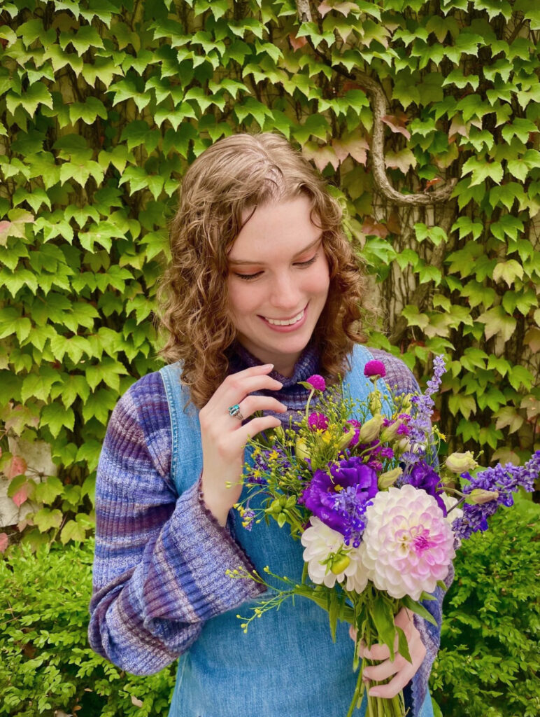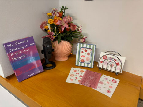 The flower postcards are digitally designed, laser cut, and hand-stamped. The flowers chosen are the favorite flowers of the women in my life, and pay homage to them, as my original community idea was women supporting women. Each postcard is unique with different colors and compositions, just like each flower is unique.