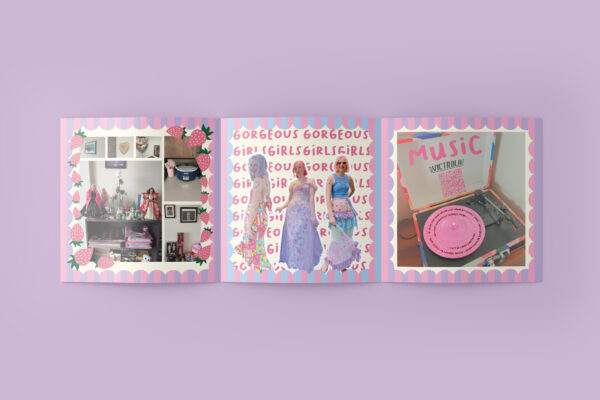 NoSignal! A Community Exhibition explores community in a digital age, offering a way for us as designers to connect with the world.  Visions of Self brings together a community of creatives who communicate their identity through fashion, makeup, music, and interior design. This idea is expressed through a universal medium: music albums. These albums are booklets that open up to reveal each person’s individual style; each booklet is unique to the person it is about, from the imagery down to the color palette and typography. Each album opens up a world of community through finding others with similar tastes, all while promoting human connection.