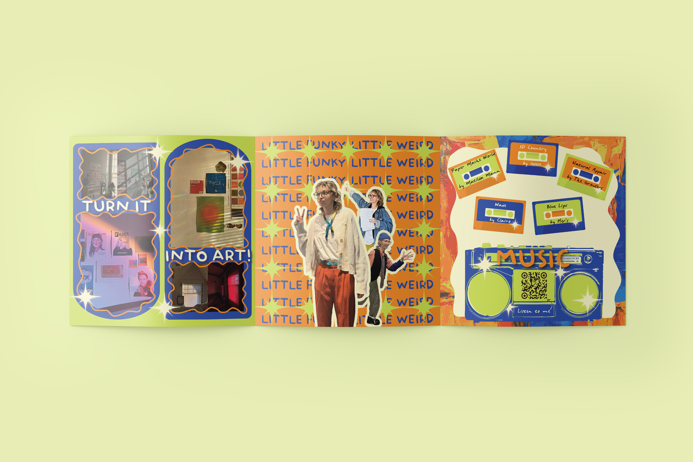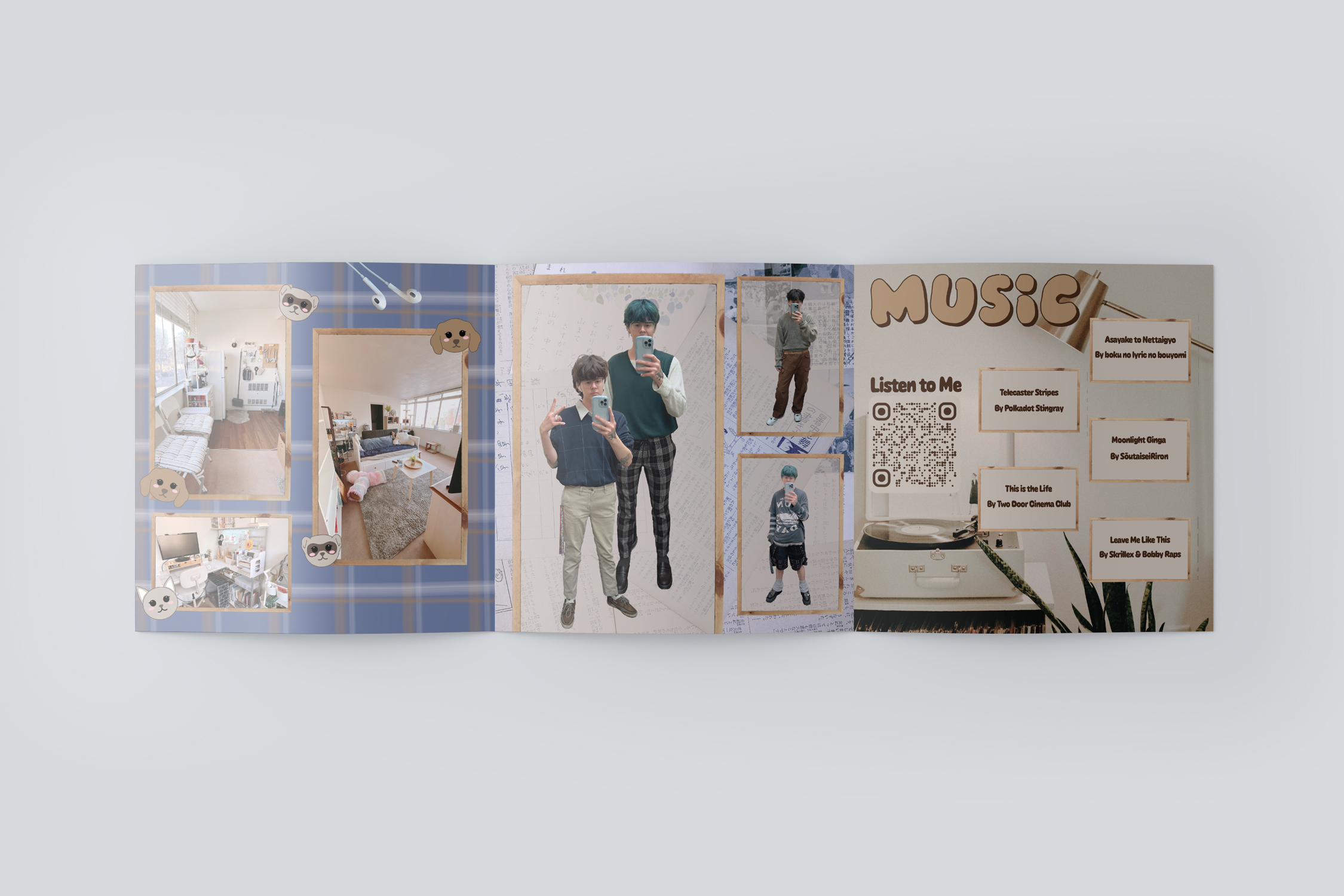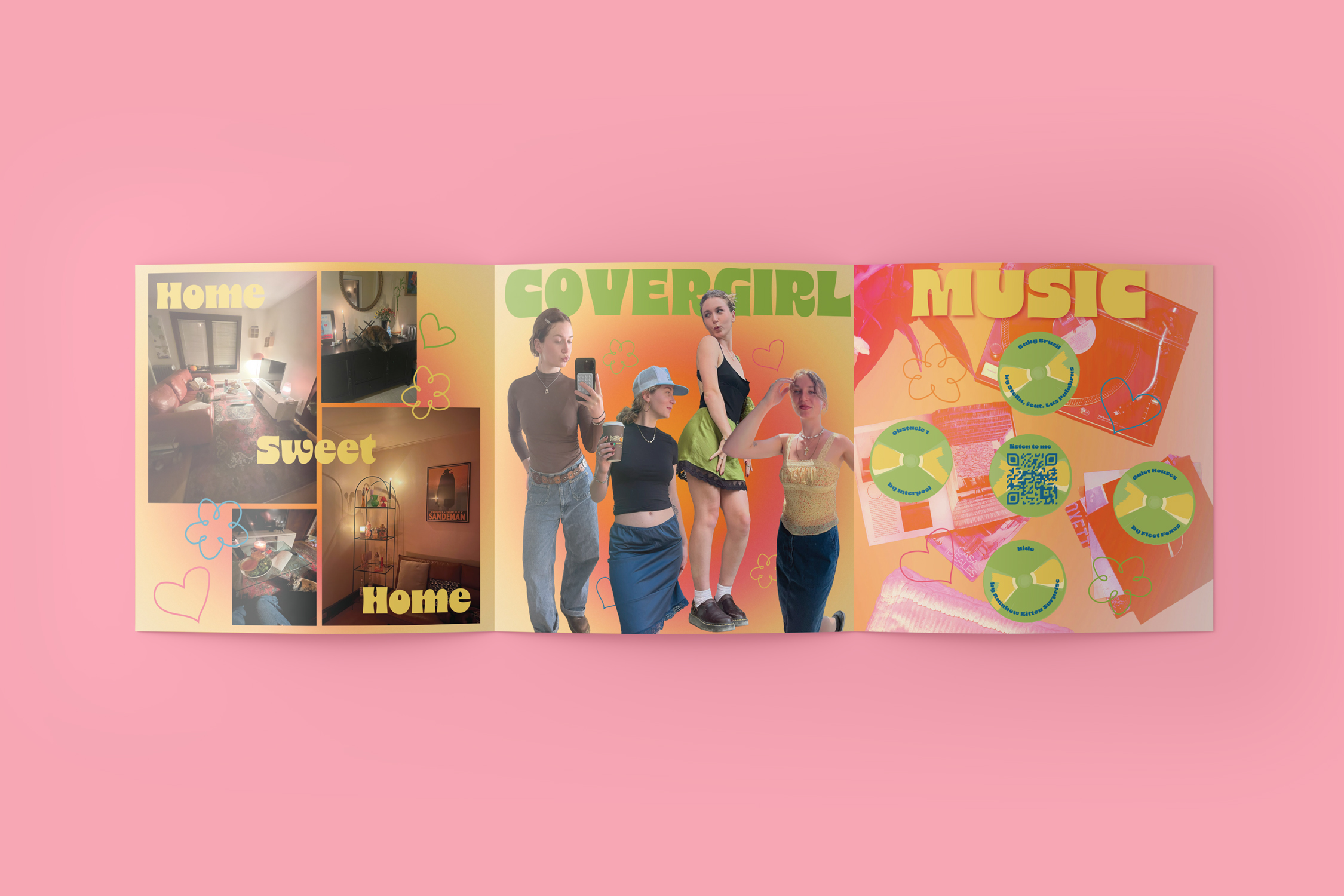 NoSignal! A Community Exhibition explores community in a digital age, offering a way for us as designers to connect with the world.  Visions of Self brings together a community of creatives who communicate their identity through fashion, makeup, music, and interior design. This idea is expressed through a universal medium: music albums. These albums are booklets that open up to reveal each person’s individual style; each booklet is unique to the person it is about, from the imagery down to the color palette and typography. Each album opens up a world of community through finding others with similar tastes, all while promoting human connection.
