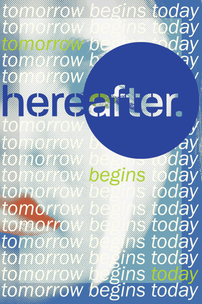 The logo and our branding are based on the concept of duality and the contrast between the present (here) and the future (after). Here is the current state of our society, technology, and environment, reflecting the world we live in. After is the abstract and unknown future that awaits with many possibilities and ways it can shape our world and life as we know it.