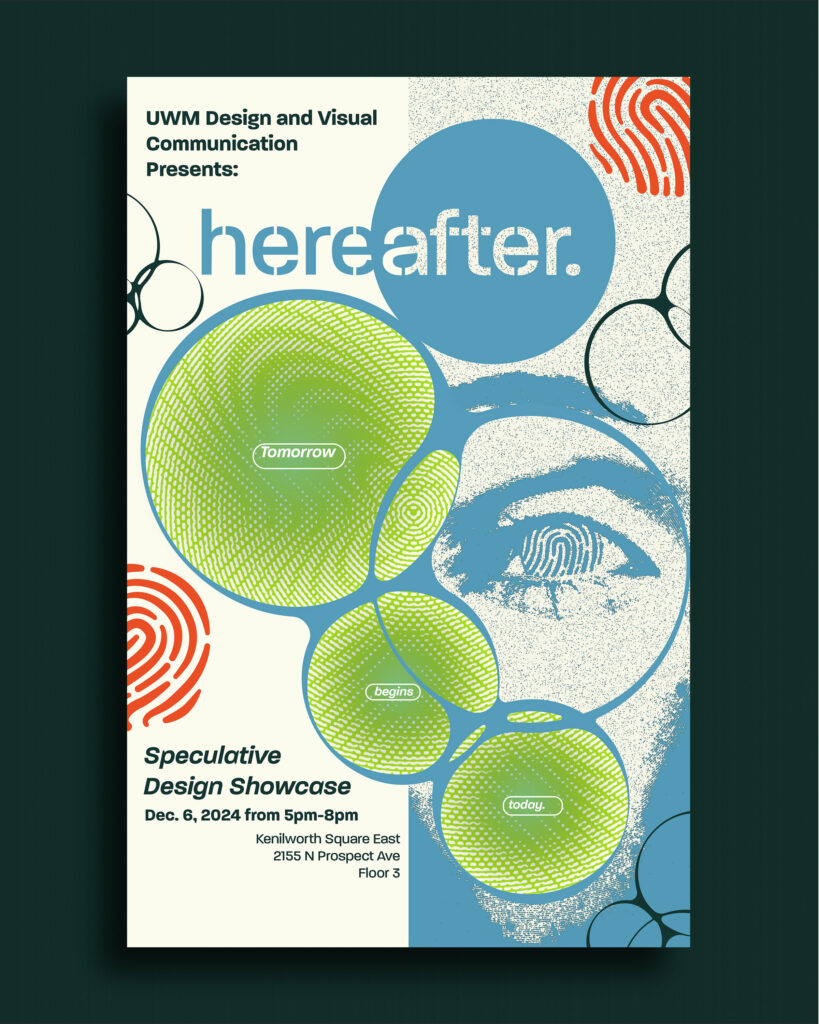 The color palette is bold and vibrant, but offers contrast with more neutral and dark shades, reflecting the duality between the hopeful and sometimes tragic futures each designer explored within their project. It reflects the possibilities of the future, regardless of outcome, but knowing that we can make an impact.