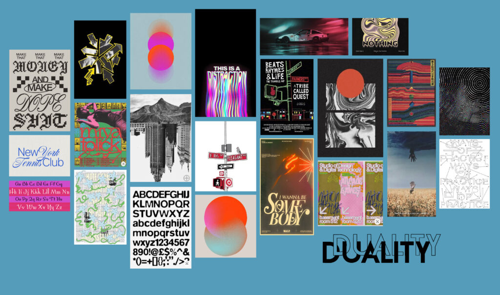 The typography is based on the font used in our logo, choosing fonts that contrast and complement our primary font while allowing it to be the bold font that takes center stage, which perfectly embodies the concept of duality and opposing elements.